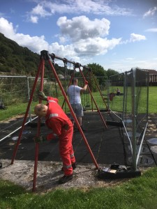 Work on painting the second play park started this morning. Duncanson Drive equipment was painted in June.